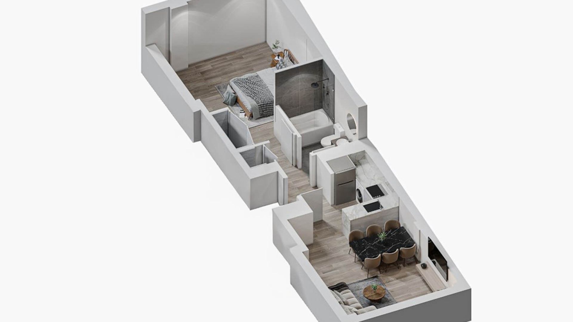 Esta vivienda es el Cuarto A de 1 dormitorio con 57 m2 construidos.